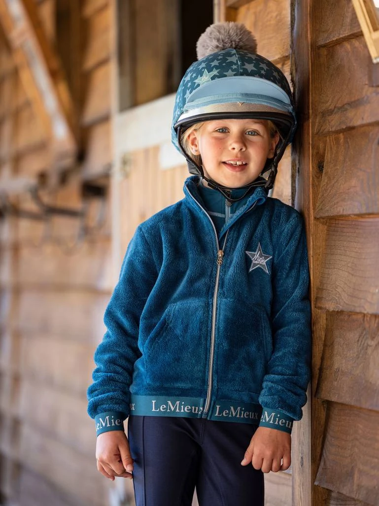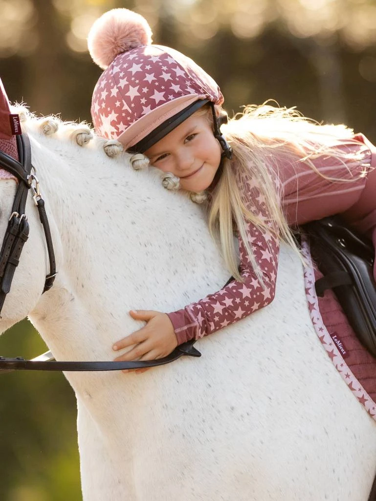 Complete your Mini LeMieux look with a smart Hat Silk from the Mini range with matching star design. Made from silky smooth 4-way stretch fabric designed to fit over most Children’s helmet sizes for a snug, secure and crease free fit. All the Hat Silks are finished with a luxurious detachable faux fur pom pom.