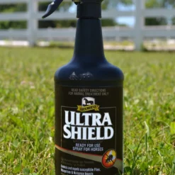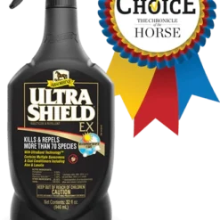 First there was Ultra Shield® and now there’s Ultra Shield® EX, the new standard in fly control protection from Absorbine®. Ultra Shield® EX is the first weatherproof, sweat-resistant formula that can provide 17 days of fly control. It’s the hardest working insecticide-repellent around and it can even be used on dogs. The most advanced, ready-to-use fly, mosquito and tick repellent available. Sweat-resistant, weather proof and contains two sunscreens. Kills and repels insects for 17 days, including mosquitoes that transmit West Nile Virus. Made with natural Pyrethrins (from chrysanthemums), Permethrin and Piperonyl Butoxide. Use on horses, ponies, dogs, stalls and bedding.