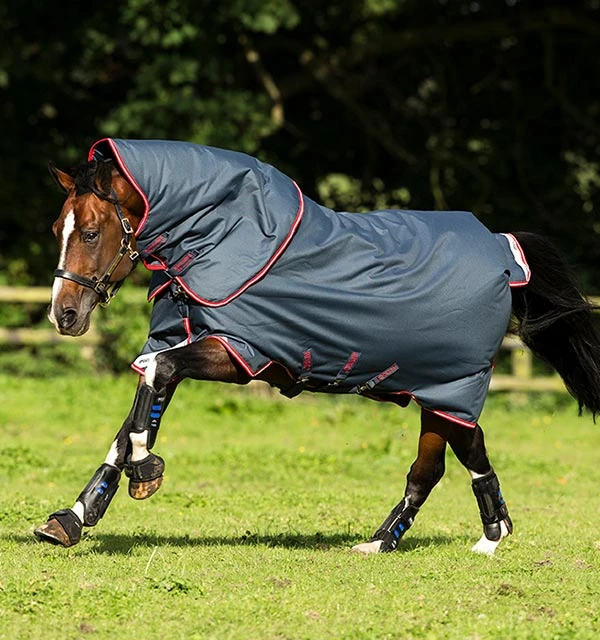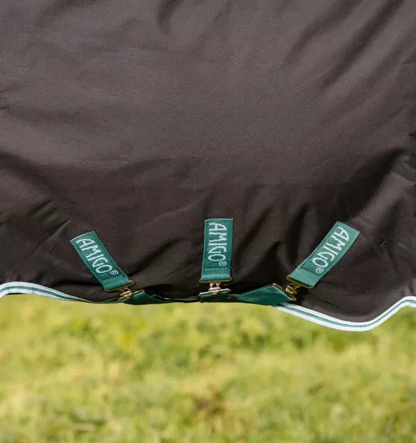 Our best-selling Amigo® turnout. Strong 1200D polyester waterproof and breathable outer. Surefit Neck design with V-Front to give freedom of movement to graze. Leg arches, reflective strips, wipe clean tail cord, liner loops, three secure cross surcingles and shine enhancing polyester lining. Detachable hood included.