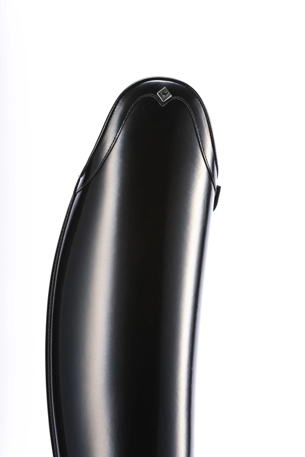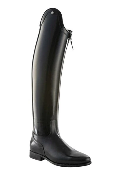 A standout dressage style for the serious rider, the DeNiro® Raffaello Dressage Boot combines classic elegance, modern features and exceptional craftsmanship. It is handcrafted from grain calfskin leather inside and out, easy to break in and features outer leg reinforcement and a back strip with interior fishbone for stiffness.