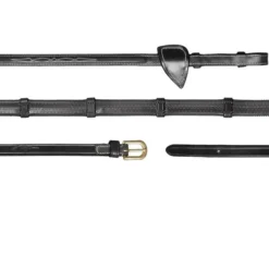 The rubber reins with 7 leather loops are designed to keep up with both you and your horse. Matching perfectly with any Dy’on D collection bridles and tack, these reins make an excellent addition to every ride.Â