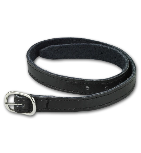Pair of black leather spur straps with pre-punched holes. These leather Spur Straps are a quality choice for pairing with your spurs, to keep them in place on your boots. Adult size (18″)