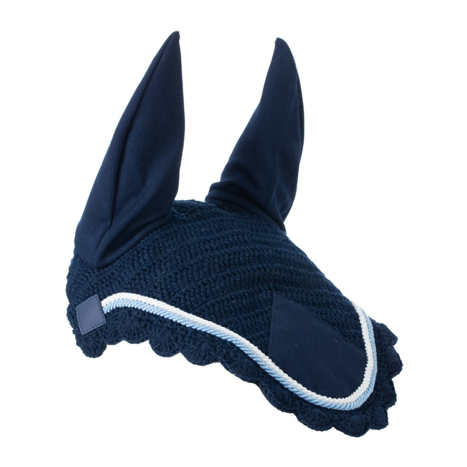 - Hand crocheted ear net with contrast piping