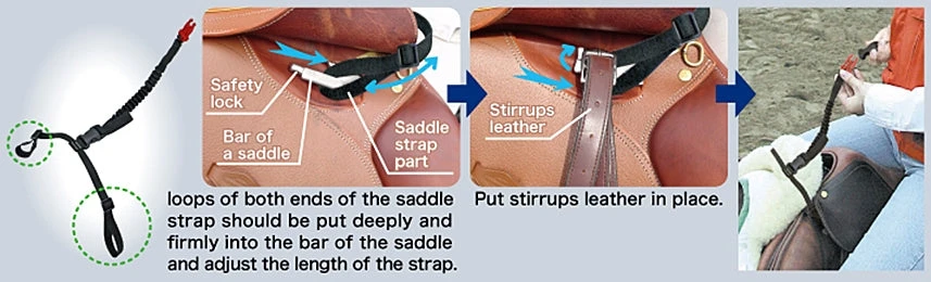 The Bungee Lanyard part and the Saddle strap part can be connected/disconnected with a buckle.