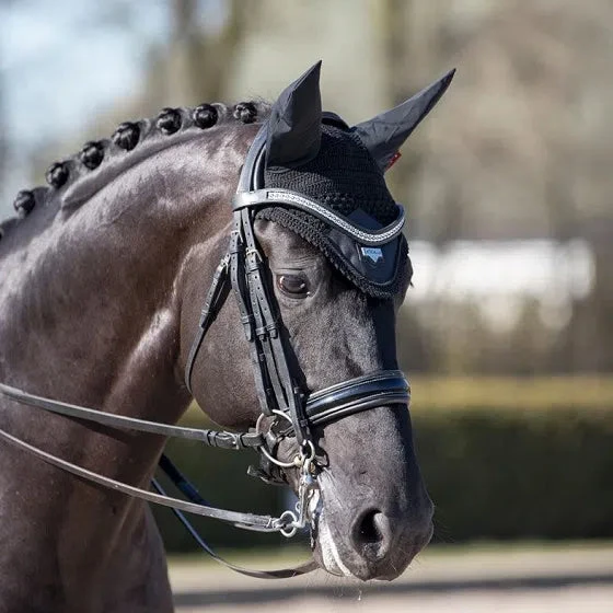 Sporting  the signature LeMieux Loire embossed metal motif these luxurious fly hoods are a stylish addition to the collection. Beautifully hand made from three-way knitted crochet with a luxurious satin fabric front piece and soft stretch Lycra ears