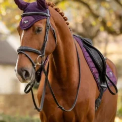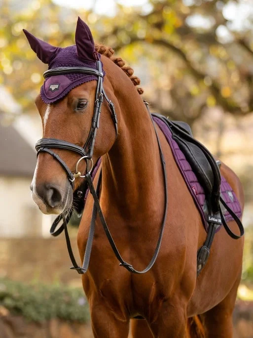 Sporting  the signature LeMieux Loire embossed metal motif these luxurious fly hoods are a stylish addition to the collection. Beautifully hand made from three-way knitted crochet with a luxurious satin fabric front piece and soft stretch Lycra ears