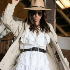 An untamed spirit and a timeless style, adorned with a fanciful cowgirl flair . Silver plated hardware is paired with a gorgeously thick Italian vegetable tanned leather. Truly the belt of a lifetime, it gets better with age and develops a softness and patina with wear. Just as stunning tying together a house dress as it is with your denim cut offs: your new favorite belt.
