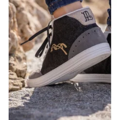 Jupiter sneakers are tricolour (black, golden & grey), they have a perfect fit, and are super comfy because they hold your ankle. They are super easy to fasten thanks to inner zippers, no need to lace it every time! The tip of the sneaker is not too short or not too round, and the Pénélope logo is embroidered on the side, for a very feminine look.