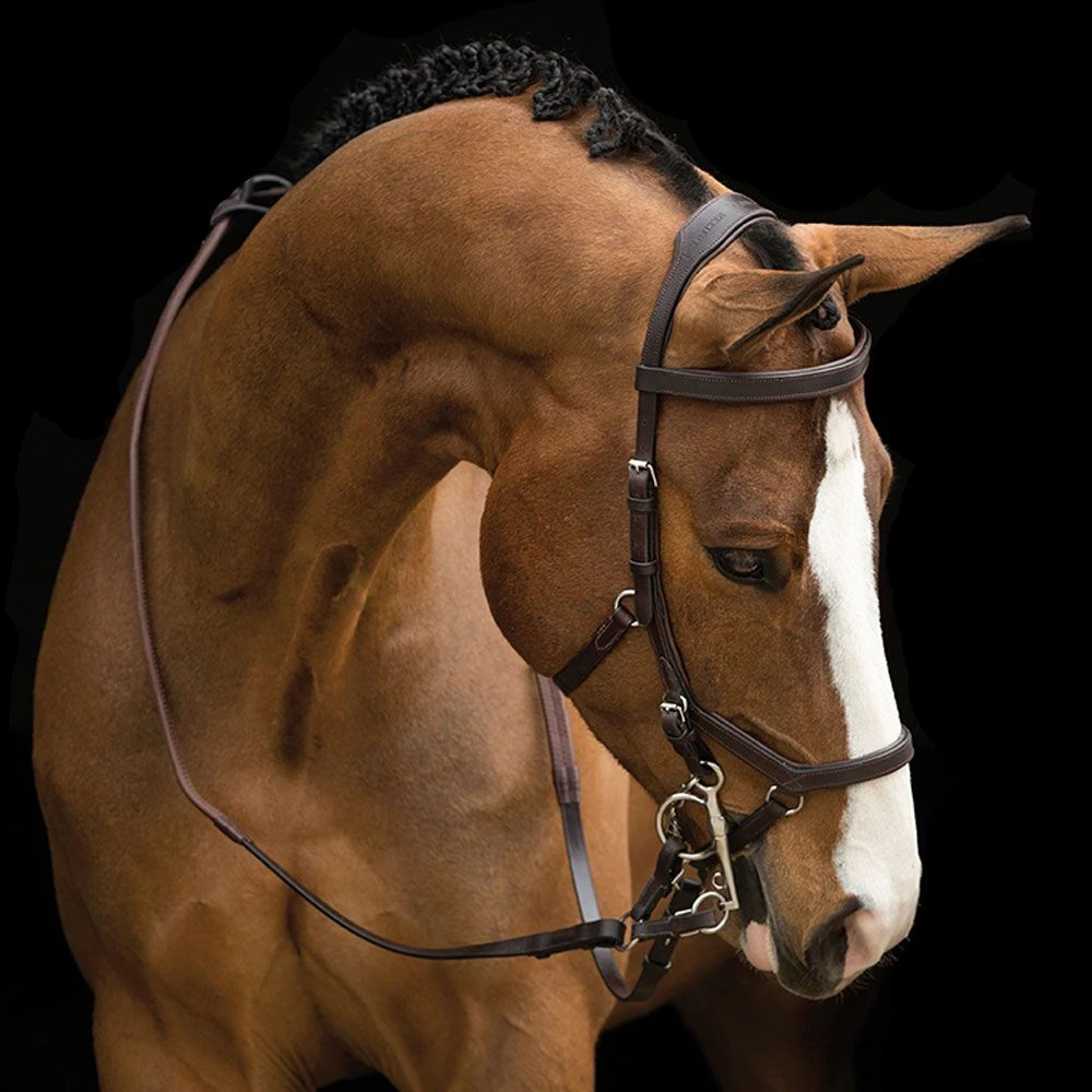 These bridles are designed to comfortably fit the shape of the horse’s skull, avoiding pressure on sensitive areas. The Micklem® Competition bridle is a show quality bridle made from hand finished leather with soft padding on the headpiece, browband, noseband and cheekpieces.