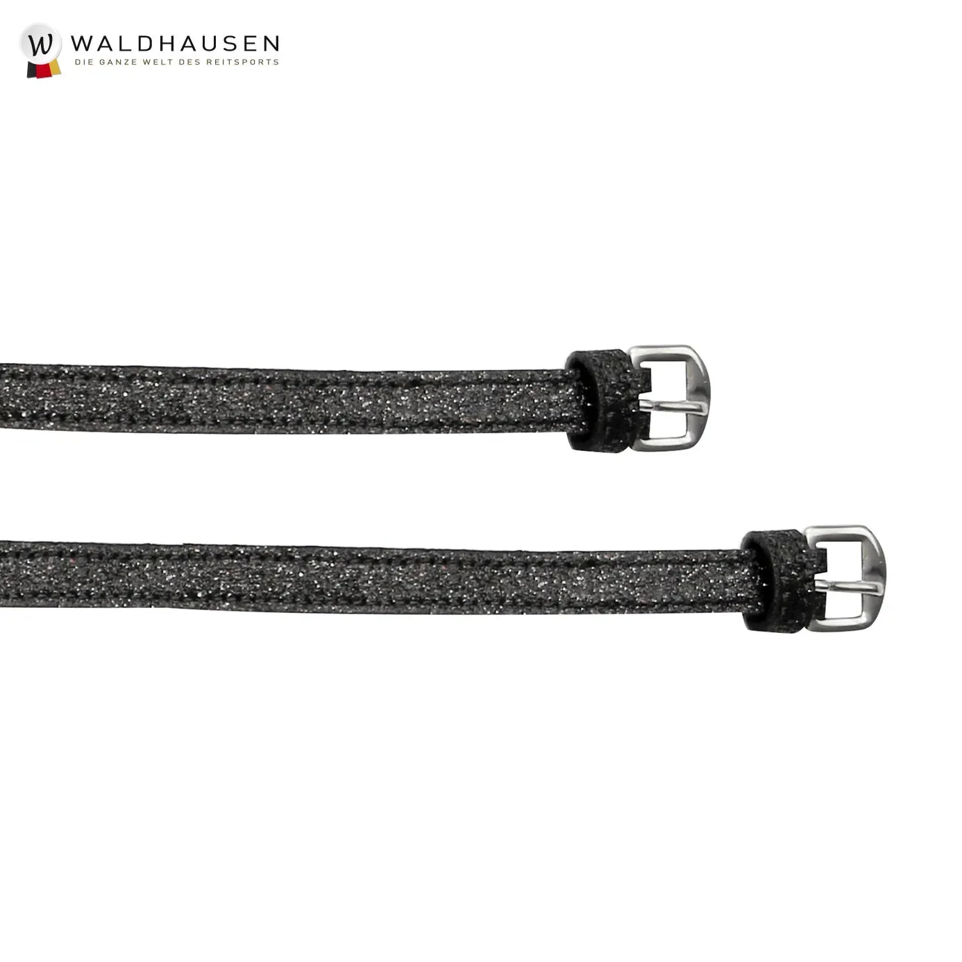 Waldhausen Sparkle Leather Spur Straps are made of leather with crystal fabric and stainless steel buckles.Â